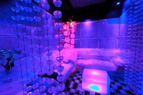 Le bar de 820 pieds carrés peut accueillir 45 invités à la fois. Le bar est éclairé de lumières rouges et bleues, décoré de sculptures sur glace sur la chaise en glace et sert des boissons dans des verres en glace lui donnant une ambiance jazzy. Les invités se voient remettre un manteau Parka bleu marine en fourrure, des bottes de lune isolées et des gants à porter avant d'entrer. Les bars de glace existent déjà dans d'autres pays, mais en plus de servir des boissons, ce bar est unique car il sert également de la nourriture chaude - et une partie de la nourriture est servie flambée.